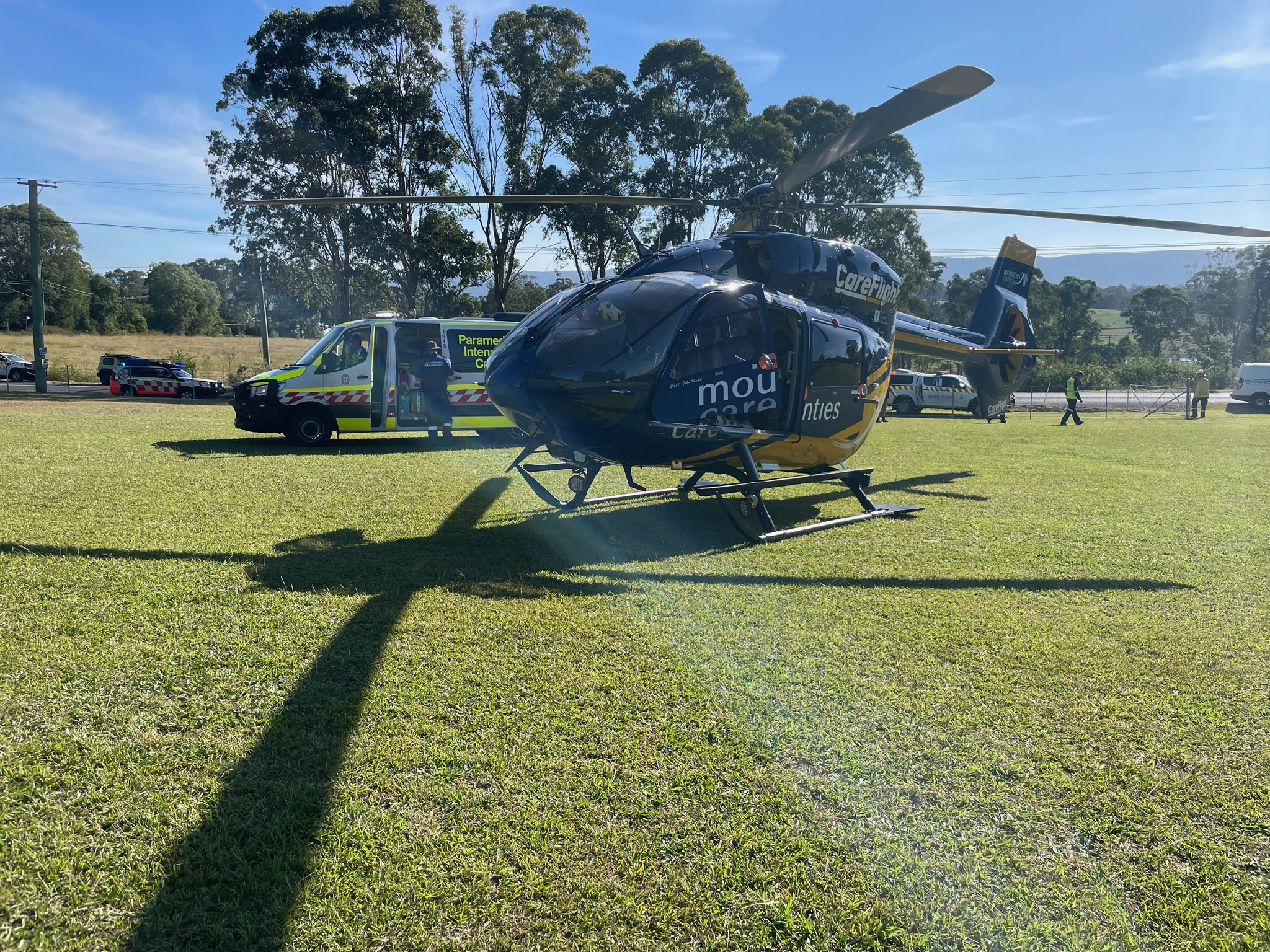 CareFlight’s specialist doctor and NSW Ambulance paramedics treated the child on scene for head injuries. The child was transported by air, accompanied by his mother, to the Children’s Hospital at Westmead in a stable condition.