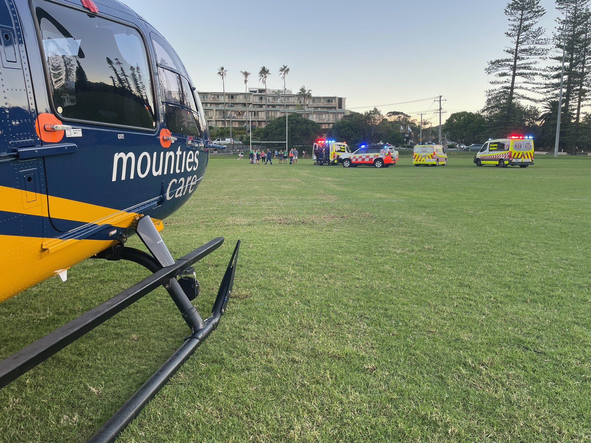 On Saturday 11 April, shortly before 5pm the Mounties Care CareFlight Helicopter was tasked by NSW Ambulance to Avoca Beach where a man in his 20s suffered a serious head injury during a football match.