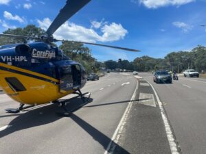 On Sunday, 14 December shortly after 11am the Mounties Care CareFlight Helicopter was tasked by NSW Ambulance to the Pacific Highway in Nords Wharf, Lake Macquarie, where a male cyclist in his 40s had been struck by a car.