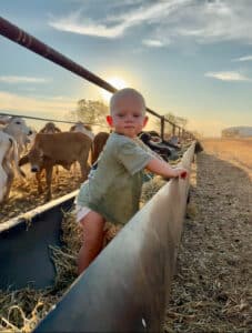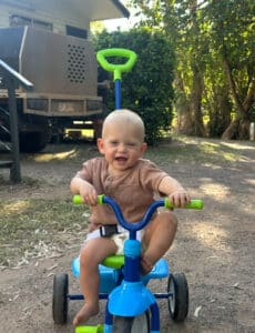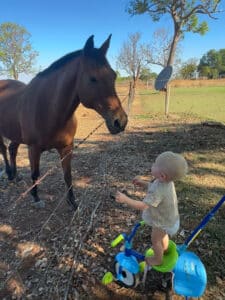 Today, Archie is a happy, healthy toddler who never sits still. He loves cows, dogs, horses, chasing chickens — and anything with a steering wheel. Life on the station suits him perfectly.